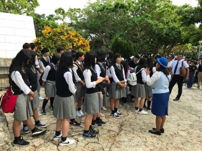 学校行事 修学旅行第2団 2018/11/14 今日は、糸数アブチラガマ、平和の礎、平和祈念資料館を見学しました。 その後、国際通りを散策し、無事ホテルに到着しています。 2018/11/13 今日はセントレアに朝7時に集合し、定刻より少し遅れて那覇空港に到着しました。 その後バスでひめゆりの塔に向かい、献花、参拝の後、ひめゆり平和祈念資料館を見学いたしました。