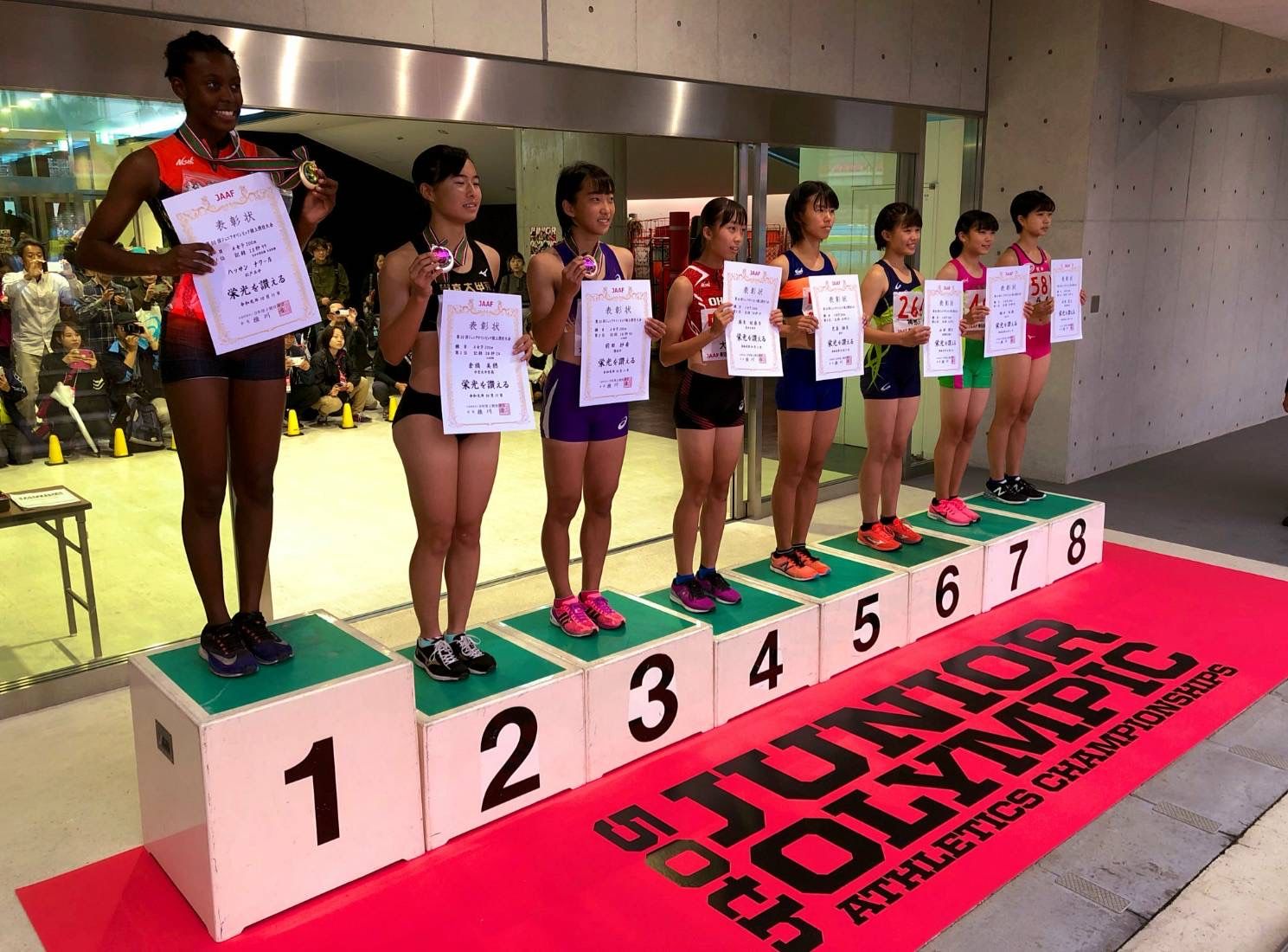 部活動 【陸上競技部】「ジュニアオリンピック」結果報告 10月11日(金)から13日(日)にかけて、第50回ジュニアオリンピックが川崎市の等々力陸上競技場で行われました。この大会に1年生の倉橋美穂が200mに出場し、24秒24と従来の大会記録を上回り2位に入賞しました。台風が近づく悪天候のなか実施されましたが、自己記録に近づく好記録で2位のメダルを獲得しました。 ご声援ありがとうございました。 200mで、2位に入賞した倉橋美穂①