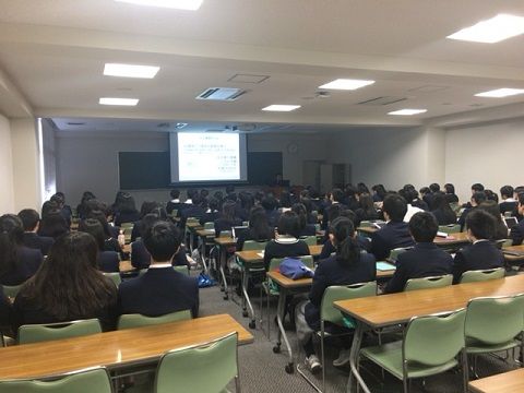 12月4日(水)にキャリア探究プログラムの一環として、特進コース・国際コース1年生対象「企業人講演会」を文理別に実施しました。