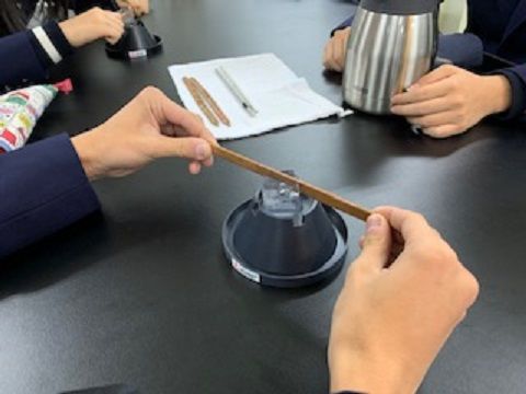 理系志望生徒対象には、三菱電機株式会社小倉学さん、佐藤満さんに「熱の伝わり方」というテーマで出前授業をしていただきました。ヒートポンプの仕組みを学び、実際に氷を切ったり、雲を発生させる実験を行いました。またそれがどのように活用され、製品化されているかを知ることで、高校での学習に興味を持ち、自分の将来について考えるきっかけになりました。講演後はグループに分かれ「音の伝わり方」「波の伝わり方」「力の伝わり方」「電気の伝わり方」「光の伝わり方」を利用した職業をiPadで調べ、興味を持った職業について更に詳しく調べて、グループ内で発表しました。思いも寄らない様々な職業が発表され、驚きや発見がたくさんあったようです。
