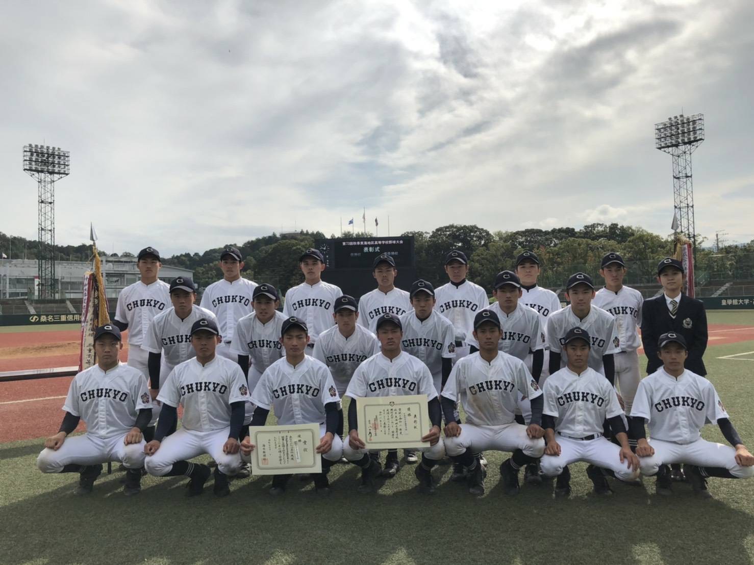 部活動 【硬式野球部】第73回秋季東海地区高等学校野球大会優勝 11月1日(日)、ダイナスタジアム伊勢におきまして、第73回秋季東海地区高等学校野球大会で決勝戦が行われ優勝を果たすことができました。(2年連続11回目)おかげさまで秋季東海大会を2年連続優勝で終えることができました。ありがとうございました。今後も本校硬式野球部の応援をよろしくお願いいたします。