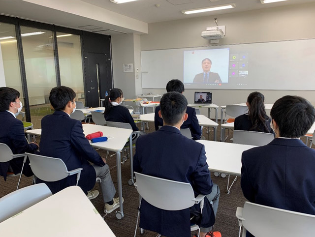 11月17日(水)キャリア探究プログラムの一環として『外務省 高校講座』をリモートで行いました。対象は1、2年生の全コースと全学年の国際コースです。 講師の奥村寿行さんは本校OBの検事であり、現在は外務省に出向し、在大韓民国日本国大使館で一等書記官として活躍されています。