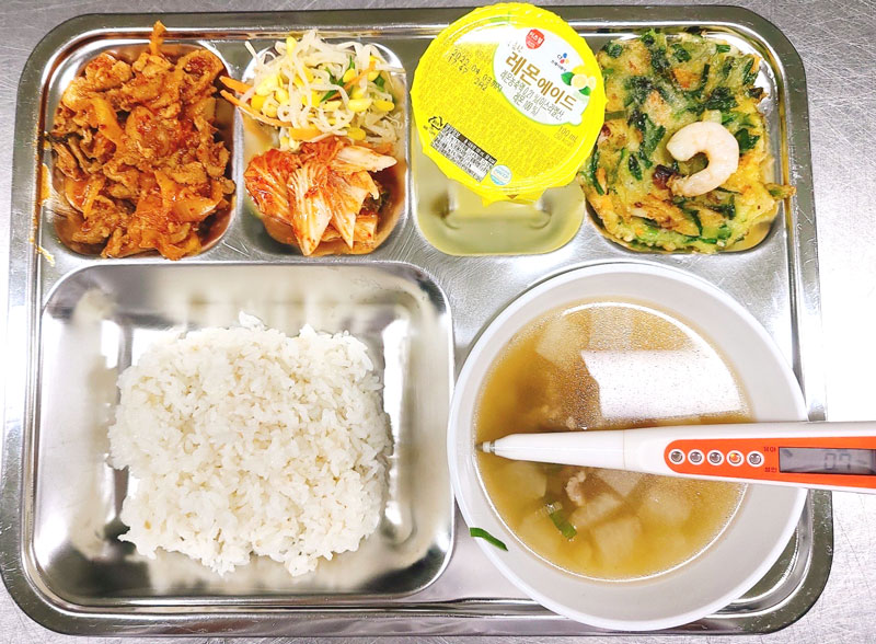 【韓国の高校の給食の写真】