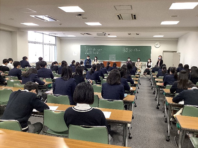 「わからない問題があったときに先生に聞きに行く前に、友人たちと一緒に考える時間がとても楽しかった」、「全員が国公立大学を目指す特進コースでは友人との切磋琢磨がとても楽しく、特進コースの強みである」という話が印象的でした。